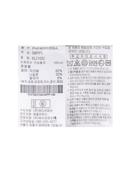 사이즈 | M(95) | L(100) | XL(105) | XXL(110) |