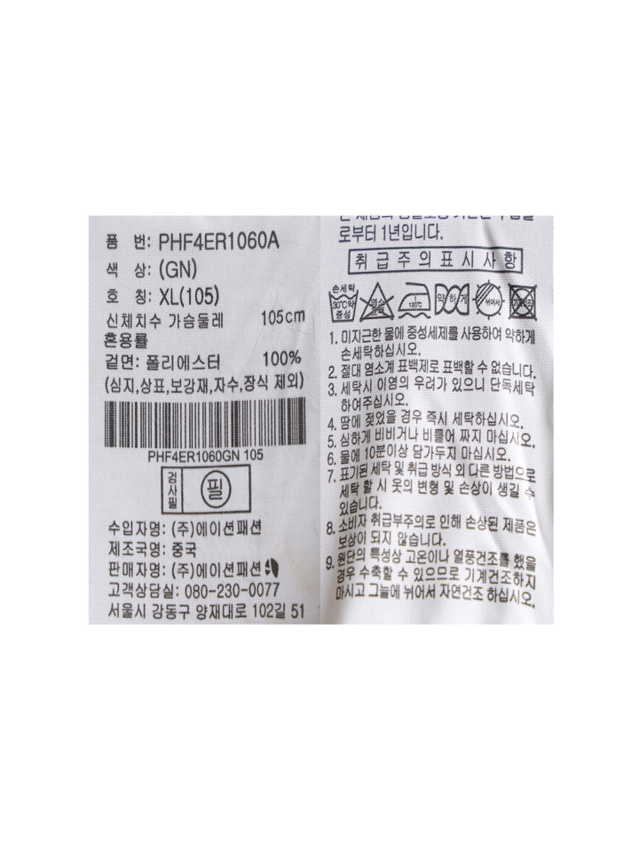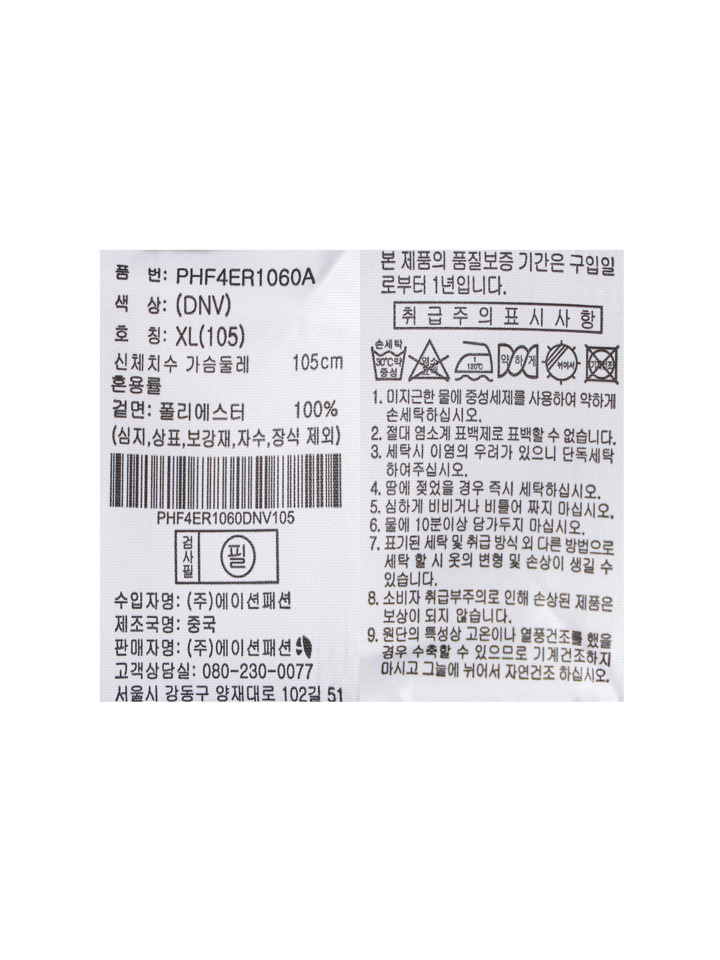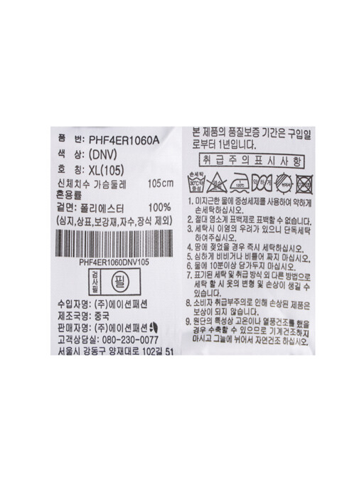 사이즈 | M(95) | L(100) | XL(105) | XXL(110) |
