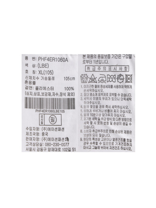 가슴둘레 | 105 | 110 | 115 | 120 |