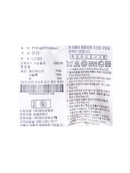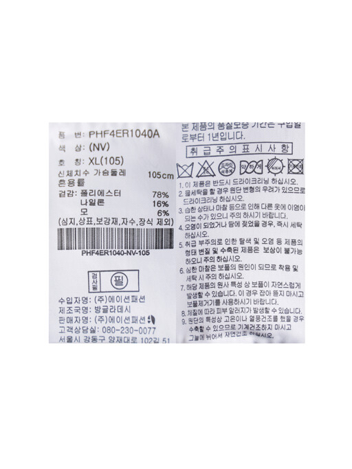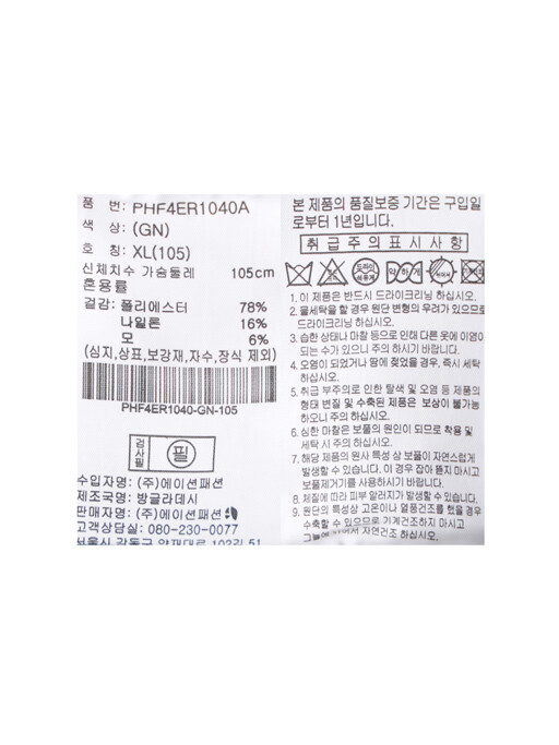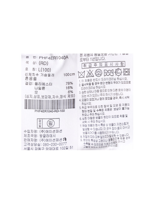 사이즈 | M(95) | L(100) | XL(105) | XXL(110) |