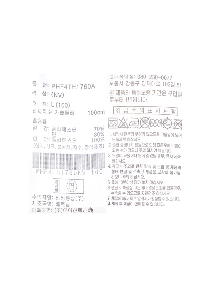 사이즈 | M(95) | L(100) | XL(105) | XXL(110) |