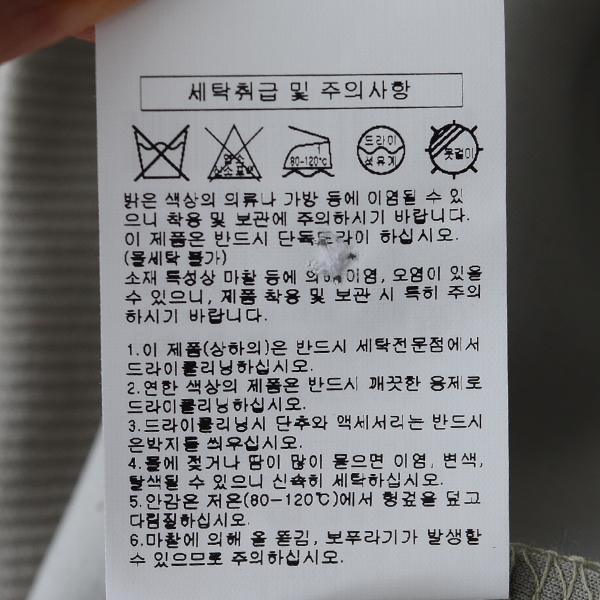 세탁방법 및 취급시 주의사항 : 드라이크리닝