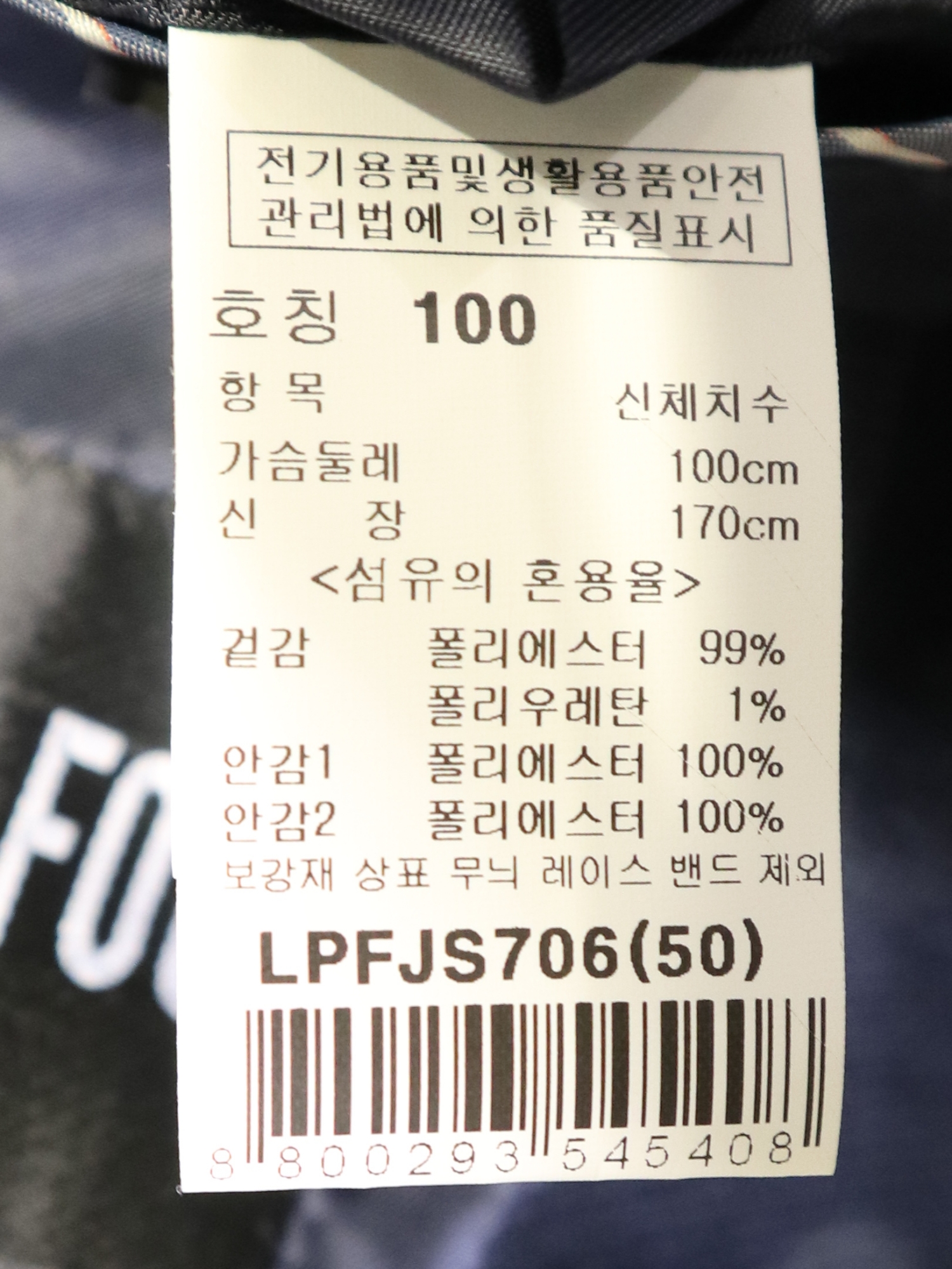 제품소재 : 폴리에스터 99%, 폴리우레탄 1%