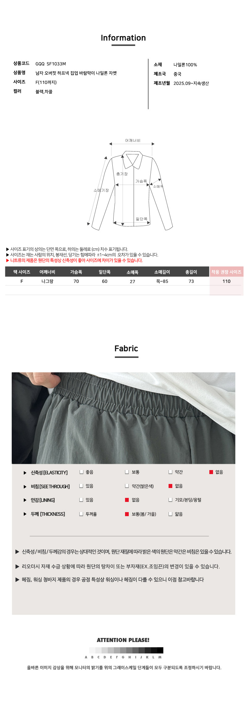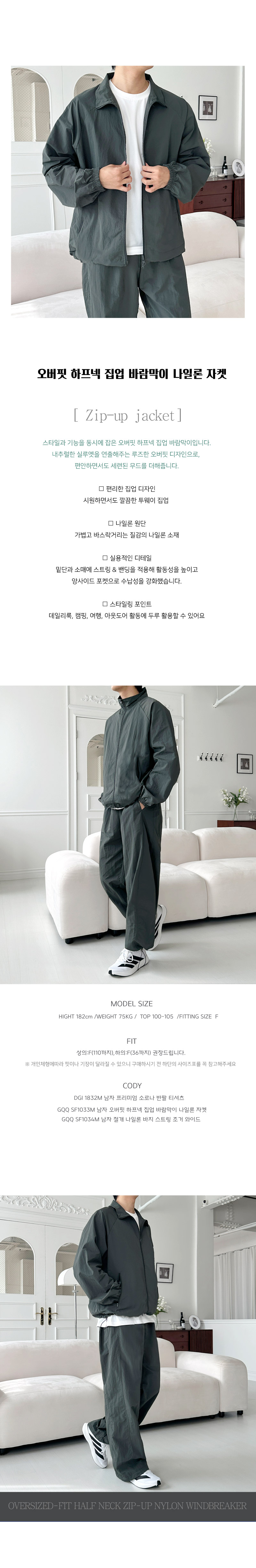 보슈아sado남성 오버핏 하프넥 집업 바람막이 트레이닝 나일론 자켓 110까지 SF