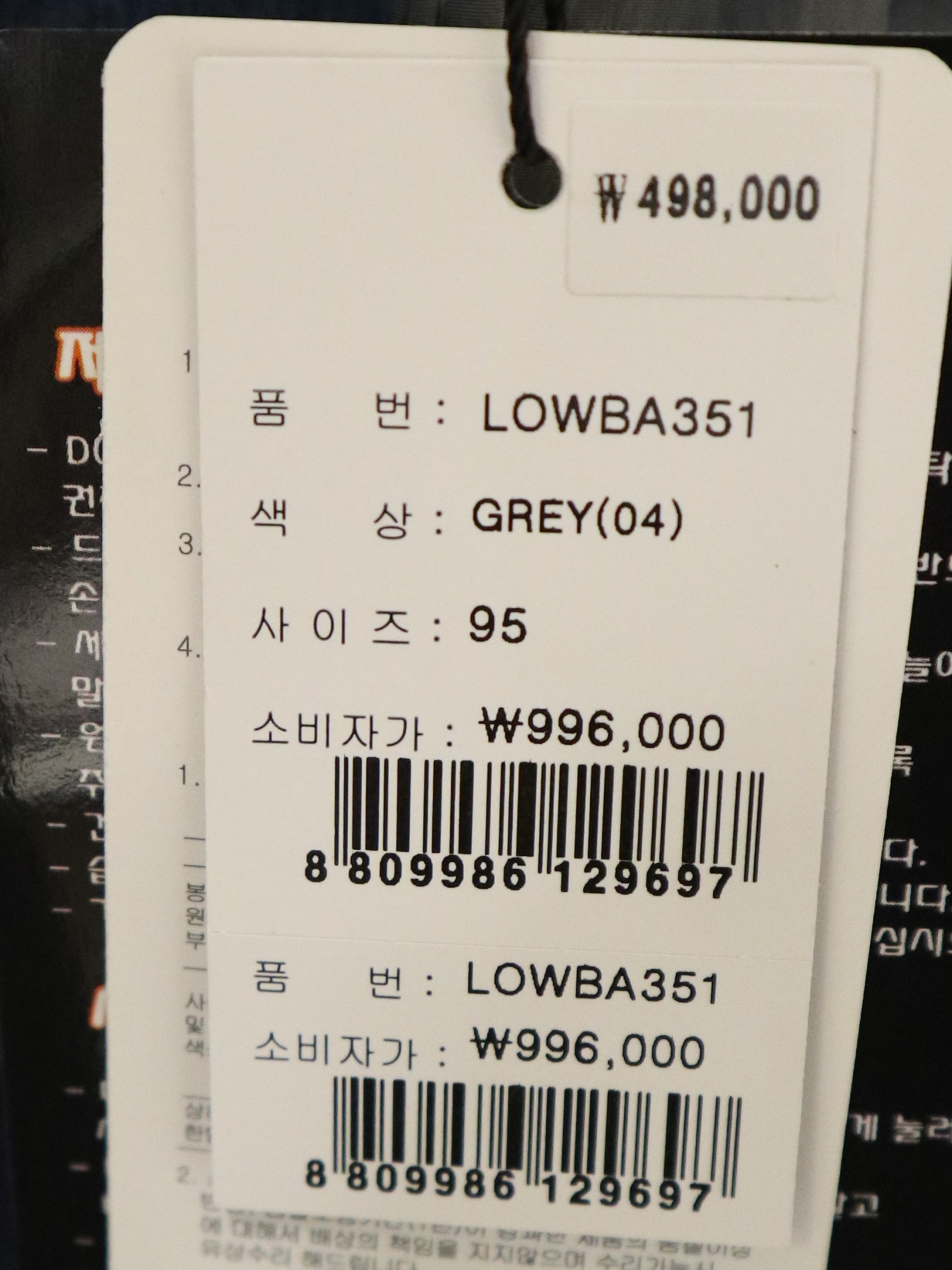 세탁방법 및 취급시 주의사항 : 손세탁