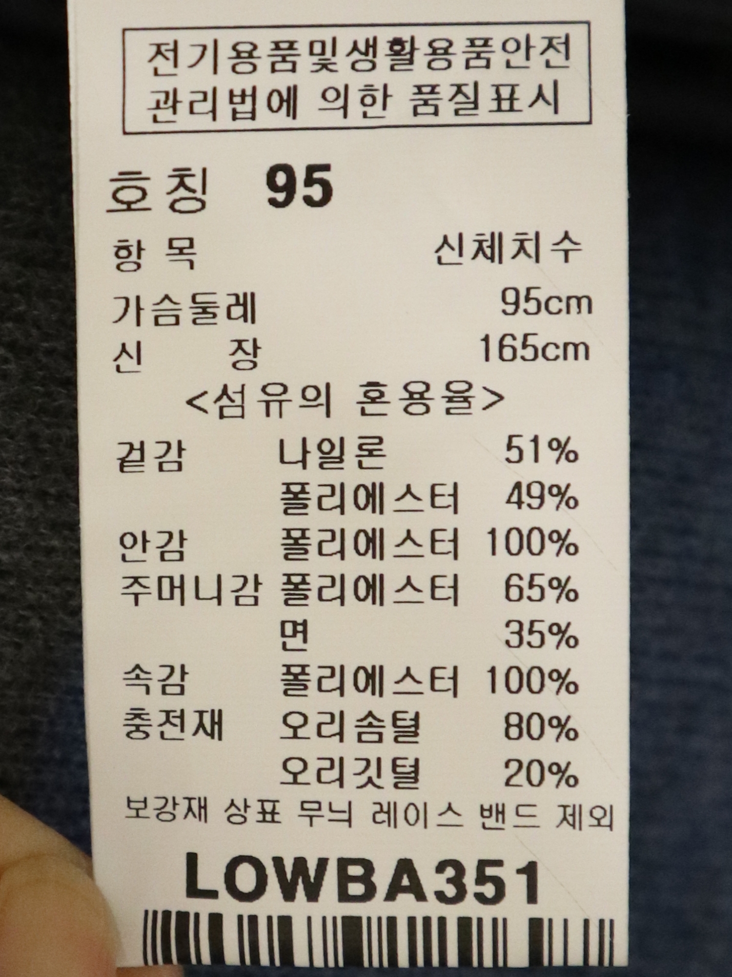 제품소재 : 나일론 51%, 폴리에스터49%
