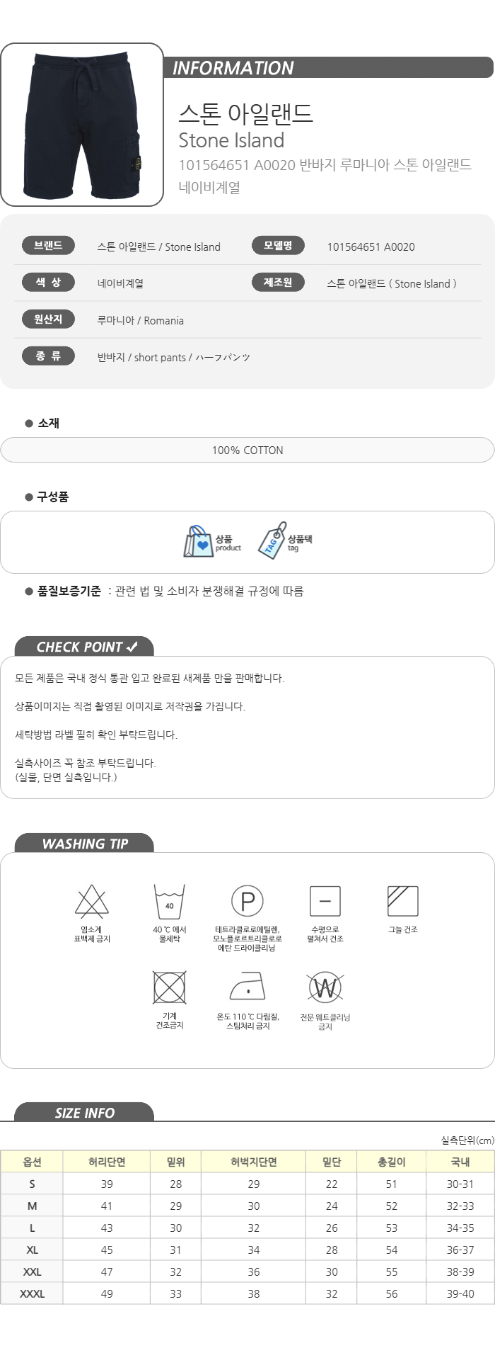 스톤아일랜드 와펜 트레이닝 반바지 101564651 A0020