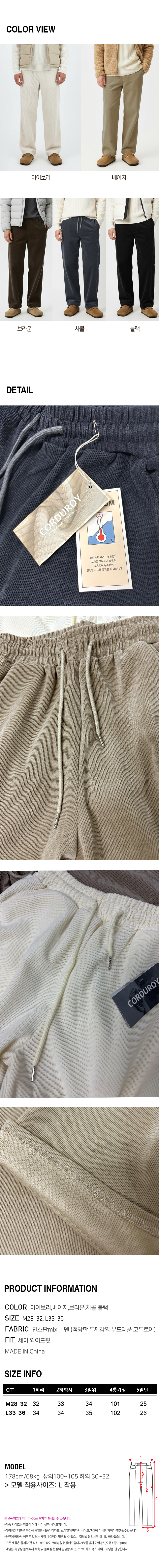 남자 코듀로이팬드 골덴바지 와이드팬츠 겨울 베이지 아이보리 브라운 차콜 블랙 밴딩_KMPA07_1