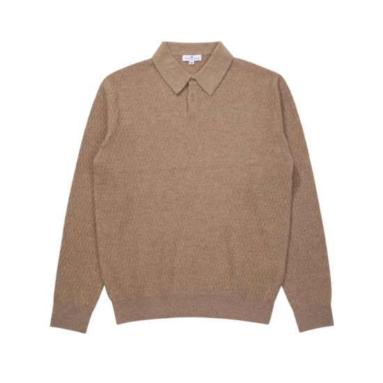(롯데백화점)캐시미어 혼방 솔리드 양두조직 카라 베이지 긴팔티 CSTY3C2308I0-1