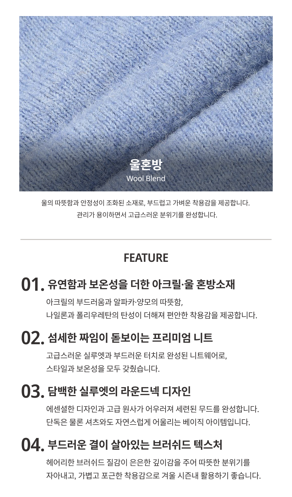 (롯데백화점)울혼방 브러쉬드 풀오버 라운드니트 3종 DLW1SWRL102-B1LN