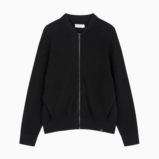 (롯데백화점)남성 CK 텍스처 라운드넥 니트 집업 가디건 블랙 (J326198)