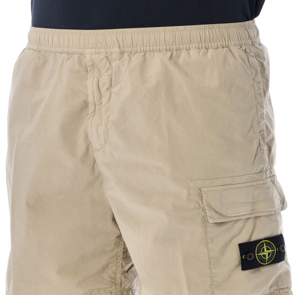 스톤아일랜드 남성 와펜 패치 컴포드 핏 버뮤다 카고 쇼츠팬츠 반바지 샌드 8015L1803 V0095