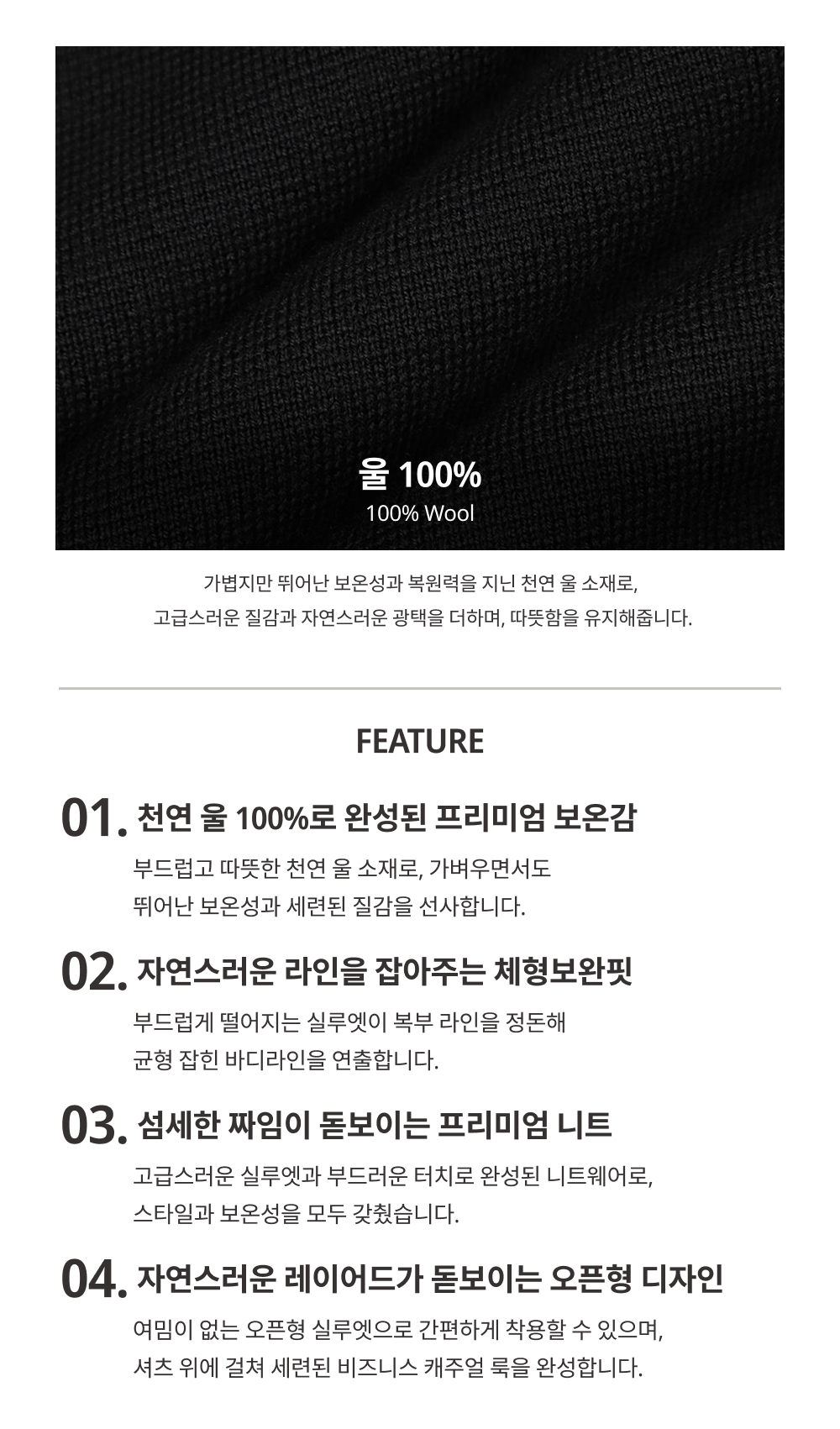 (롯데백화점)울100 오픈형 베스트 2종 DLW1SWVE110-K1LN