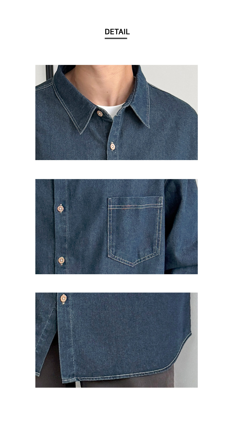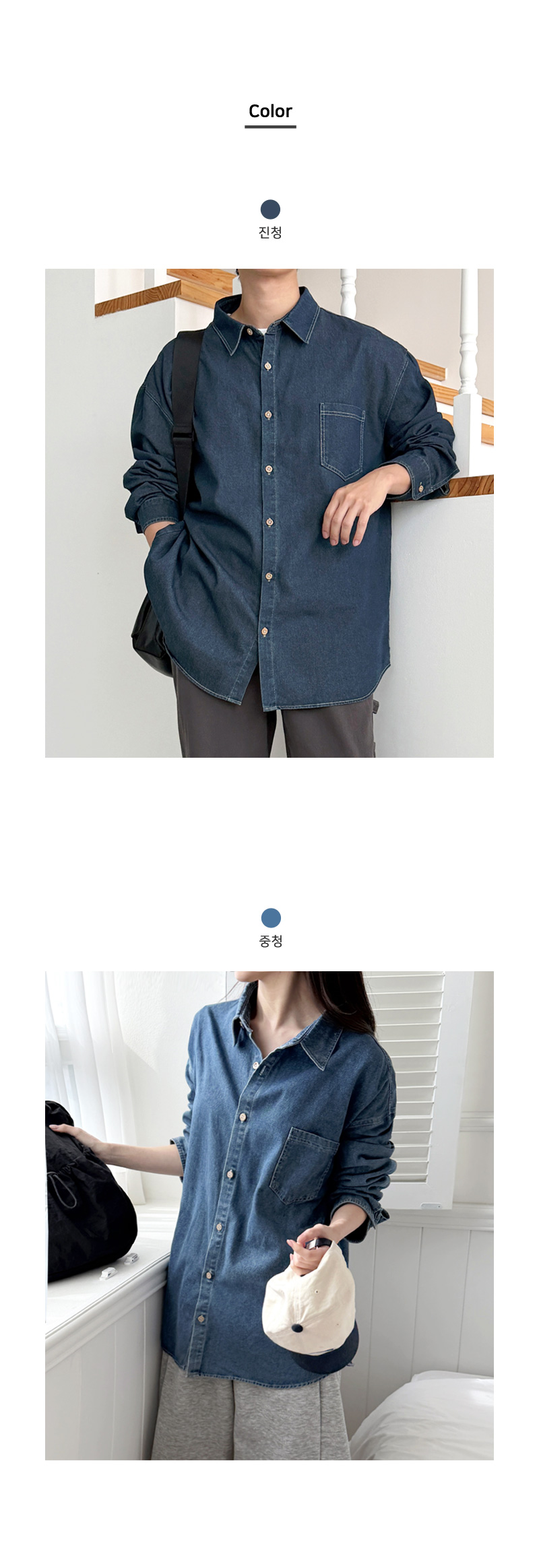 보슈아sado남성 청남방 오버핏 데님 셔츠 긴소매 SF1049M