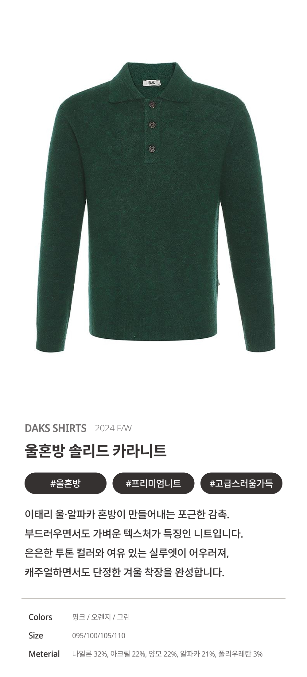 닥스울혼방 솔리드 카라니트 그린_DKW1SWTL101E1