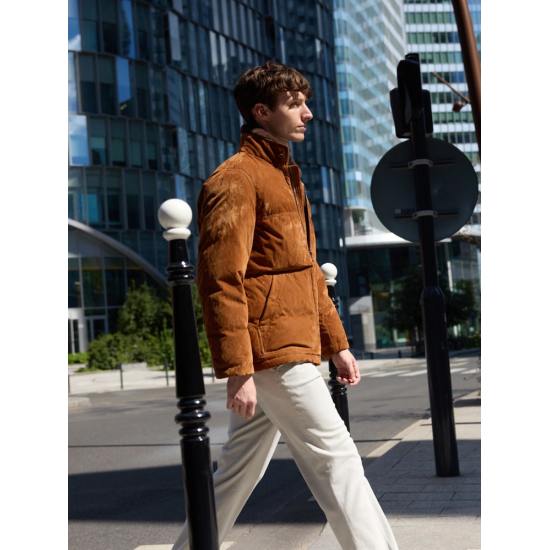 (롯데백화점)레더 라이크 칼라 퍼 다운 점퍼 - 브릭 GC5938M15C-WSBJ