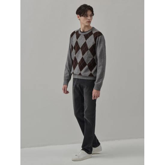 (롯데백화점)아가일 패턴 라운드 스웨터 - 그레이 GC5X51M013-WSBJ