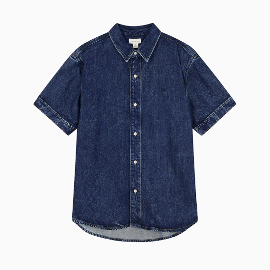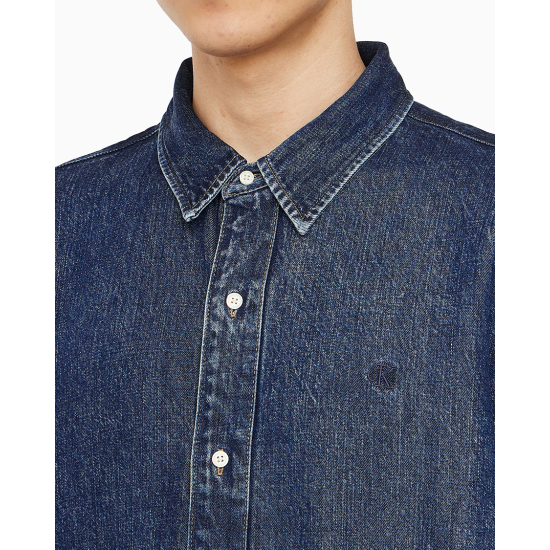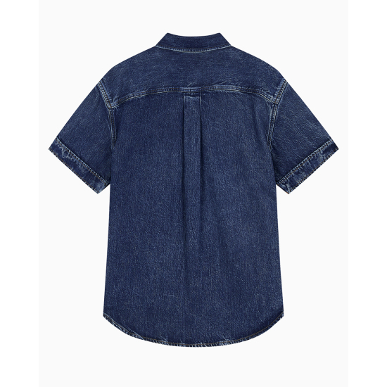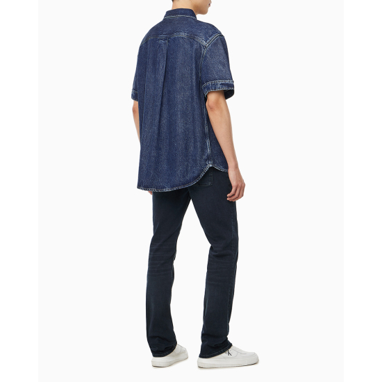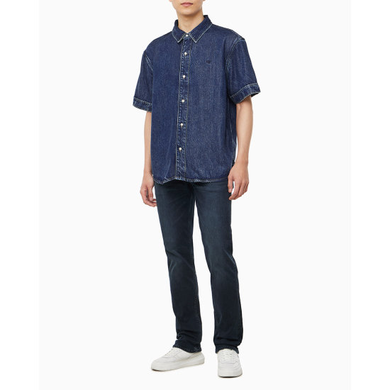(롯데백화점)남성 CK 오버핏 다크블루 반팔 데님셔츠 청남방 4RB954G (4RB954G-R7G)