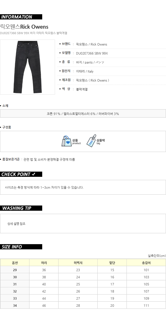 릭오웬스 DU02E7366 SBW 99X 다크쉐도우 콘코디언 디트로이트 스트레치 데님 팬츠