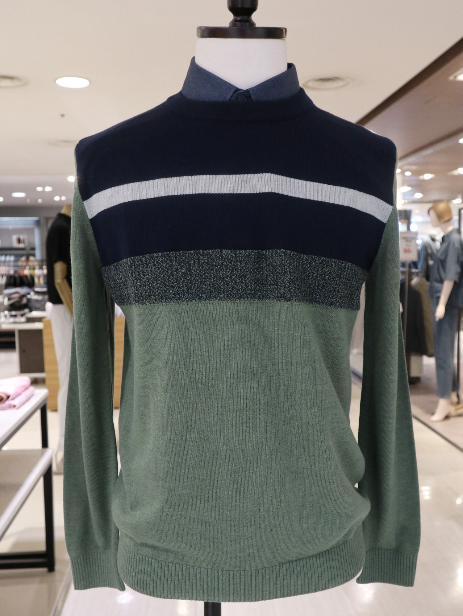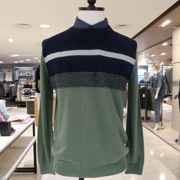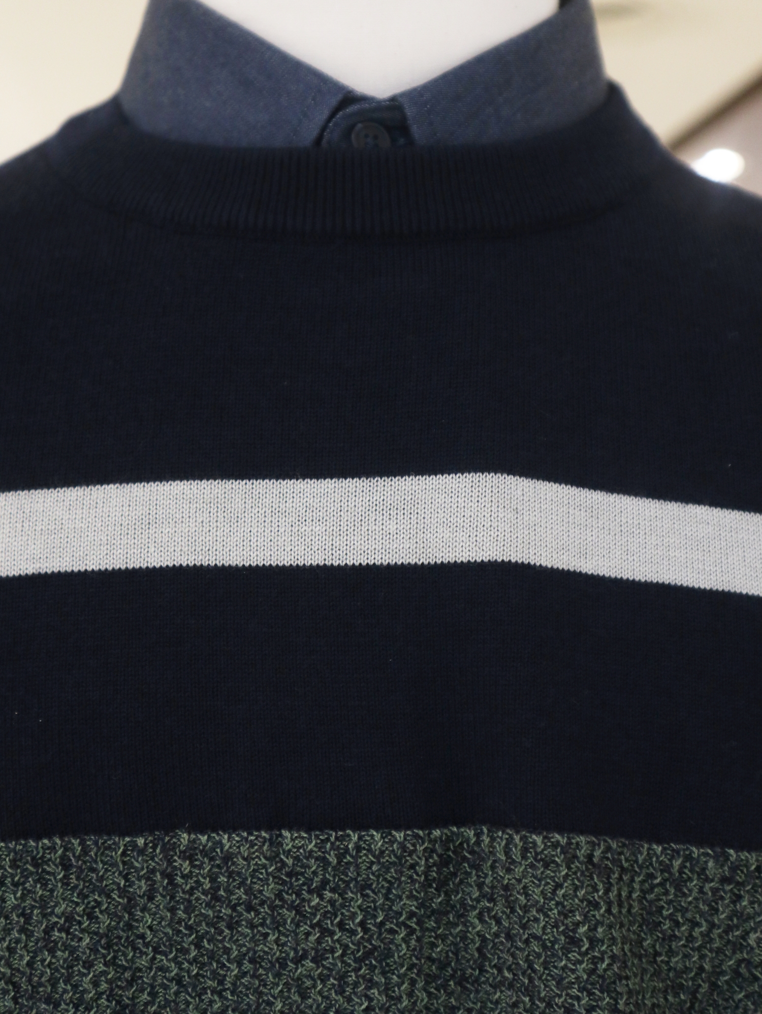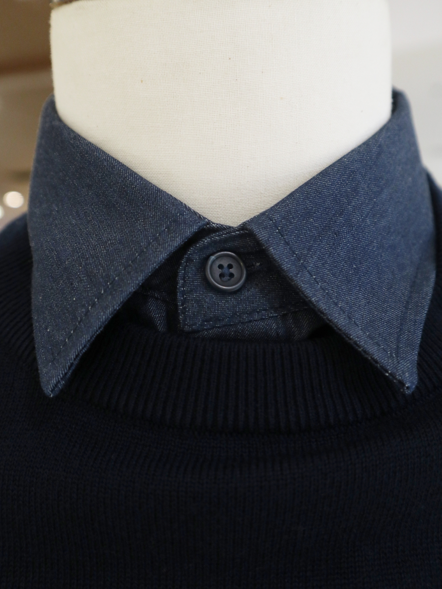 면 카라가 레이어드 된 라운드 니트티셔츠입니다!!!