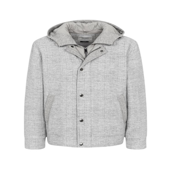 이탈리아 레오마스터(LEOMASTER) 사의 울 혼방 소재에 은은한 체크 패턴을 더한 경량 다운 블루종입니다.