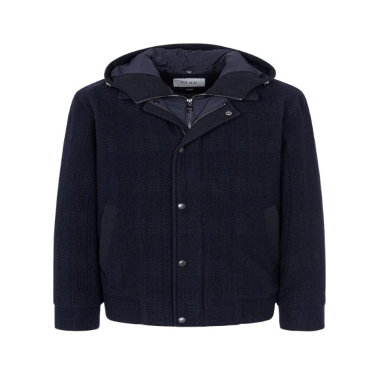 이탈리아 레오마스터(LEOMASTER) 사의 울 혼방 소재에 은은한 체크 패턴을 더한 경량 다운 블루종입니다.