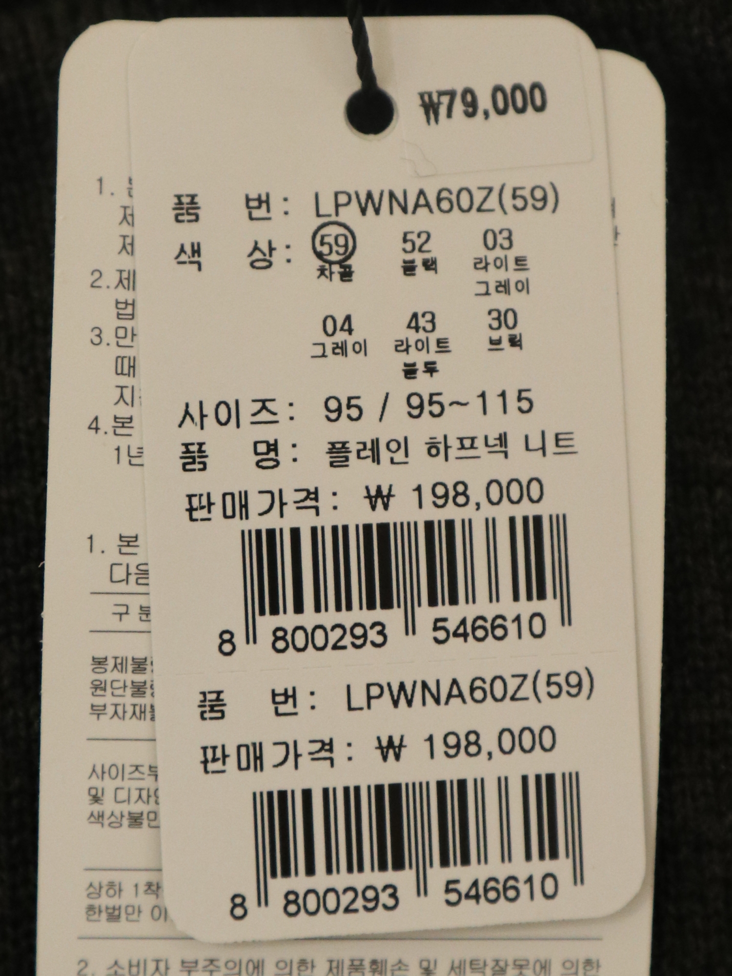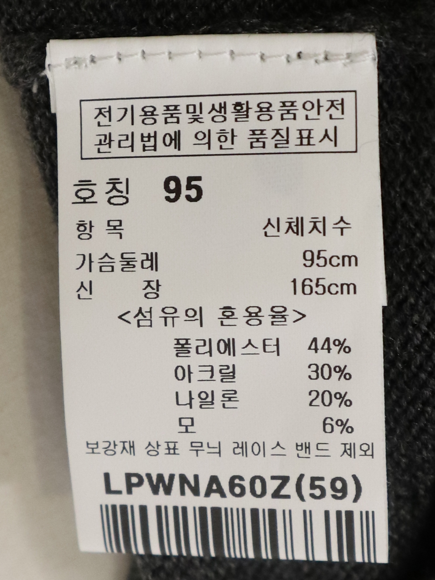 제품소재 : 폴리에스터44%, 아크릴30%, 나일론20%, 모6%