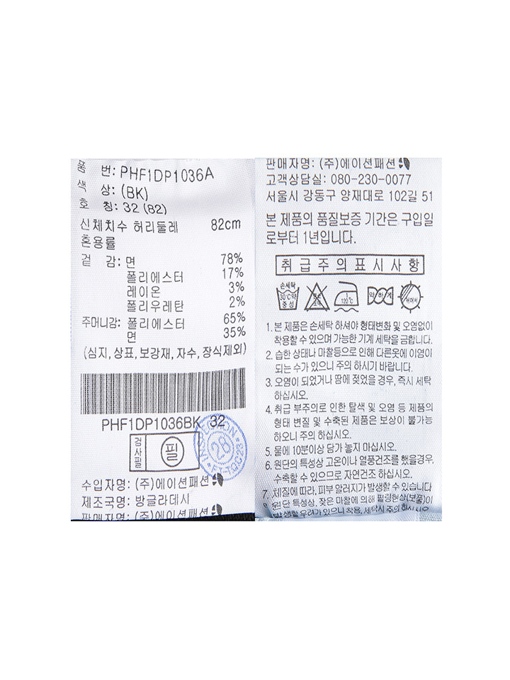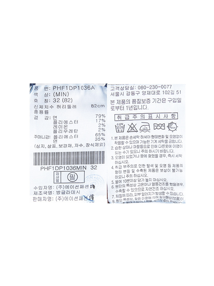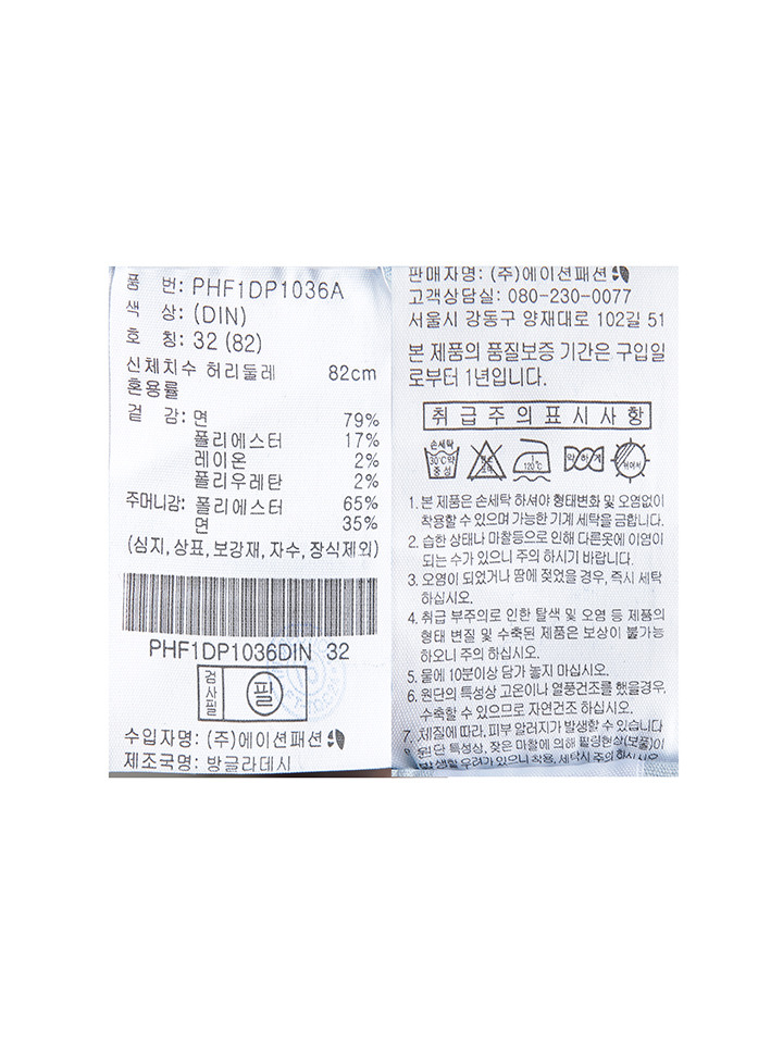 밑단둘레 | 31 | 32.5 | 34 | 35.5 | 37 |