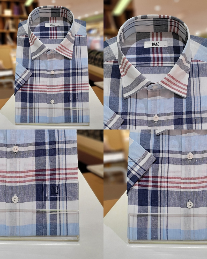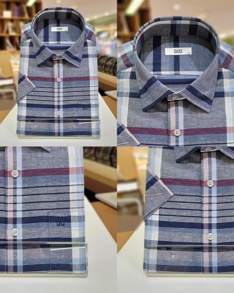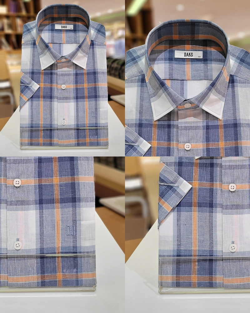 레귤러핏 린넨혼방 미듐체크 셔츠