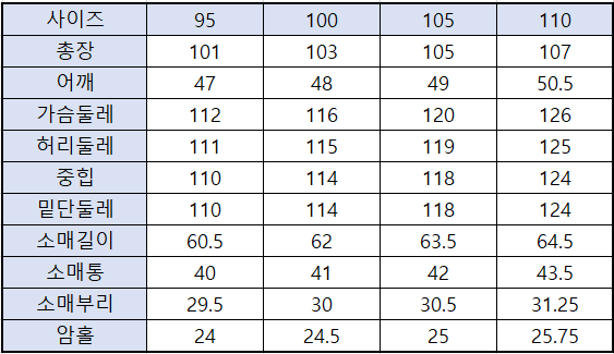 제품 사이즈 실측 정보