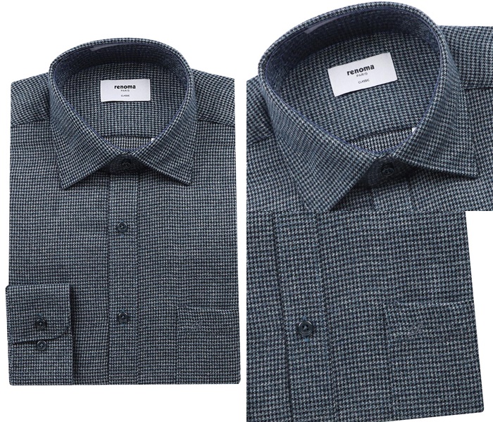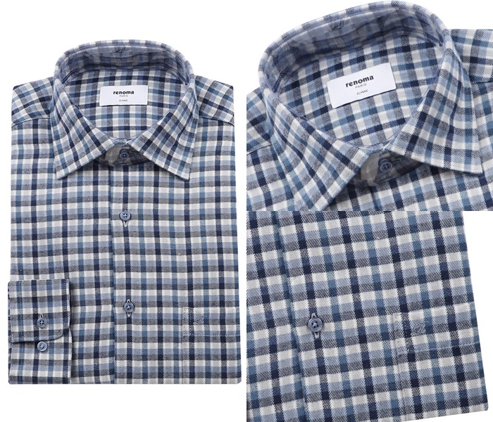 밑단일자, 고급스러운 투톤 스타체크 패턴 기모 셔츠
