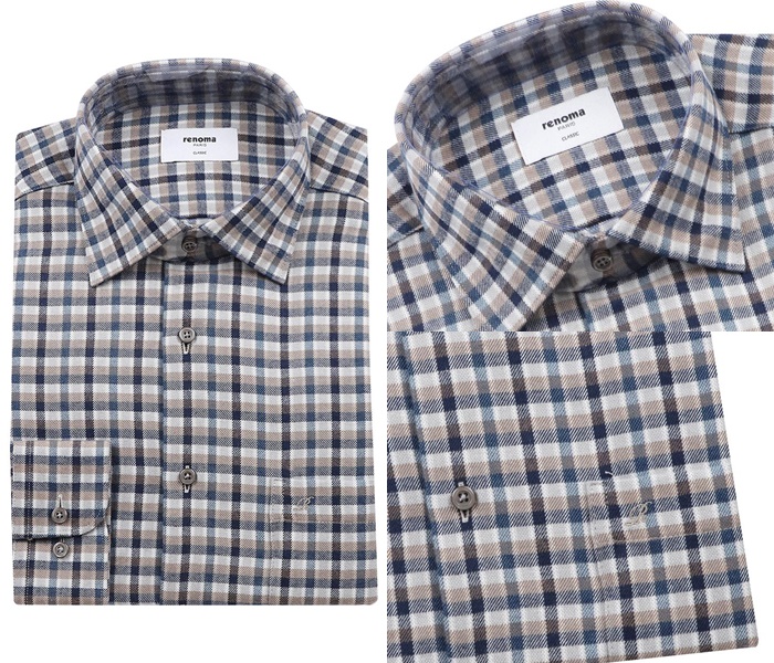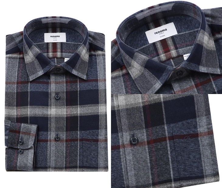 밑단일자, 고급스러운 느낌의 멀티 빅체크 패턴 기모 셔츠