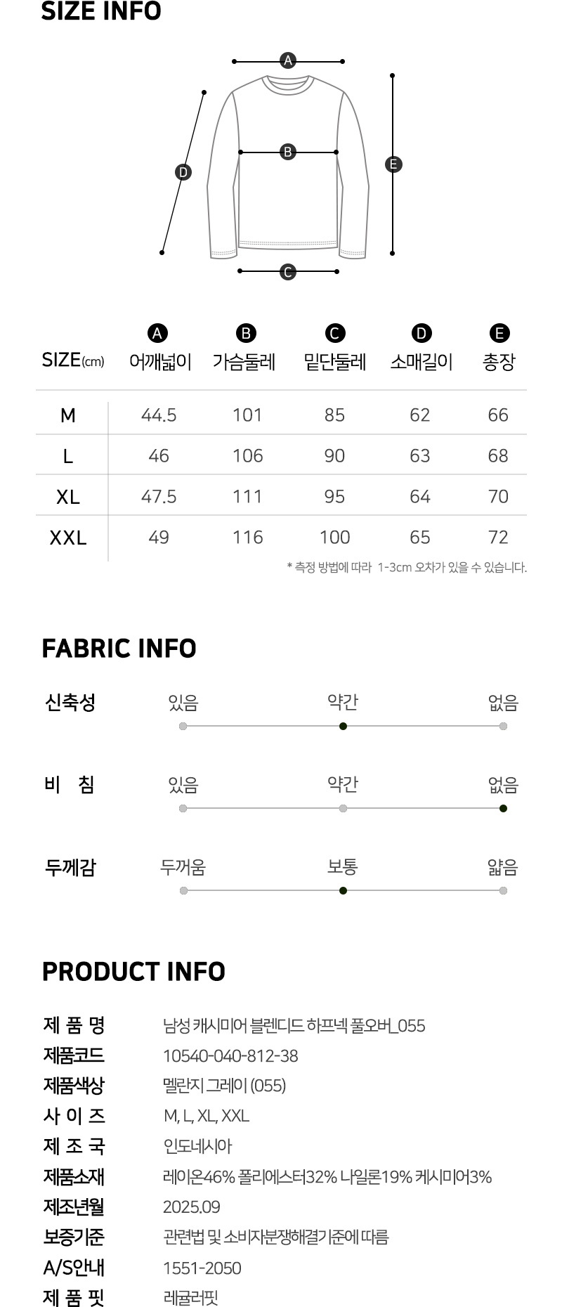 행텐행텐남성 캐시미어 블렌디드 하프넥 풀오버_055(10540-040-812-38)