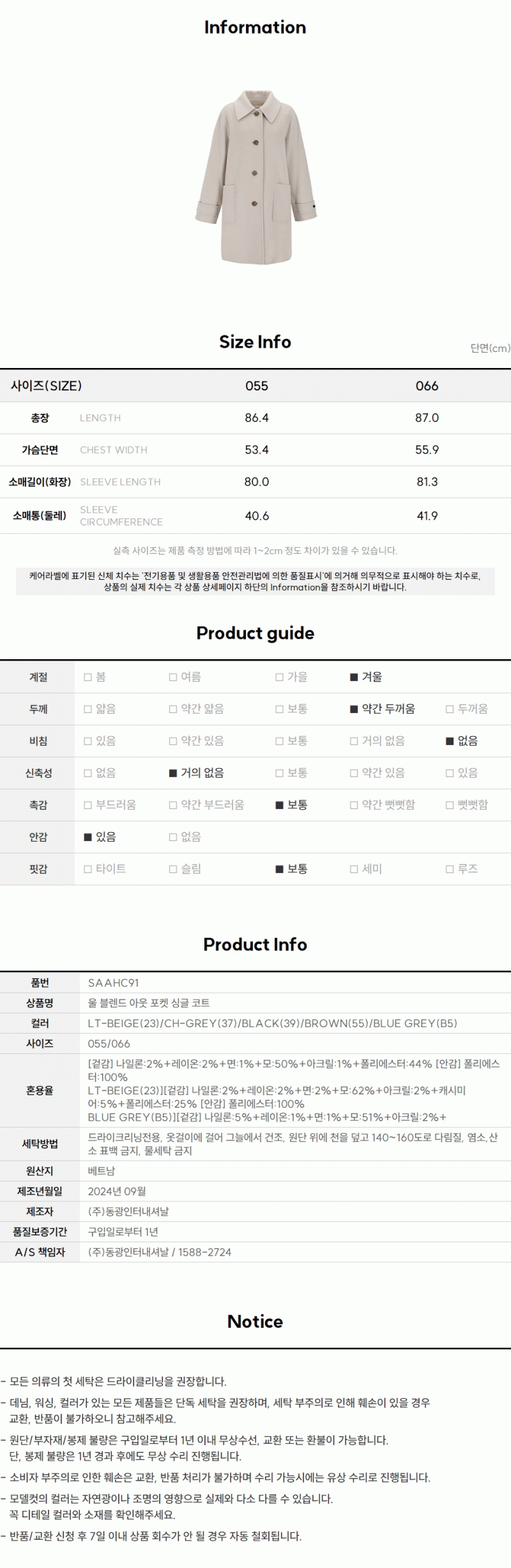 SOUP 캐시미어 아웃 포켓 싱글 코트 SAAHC91