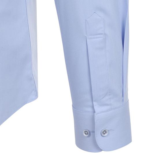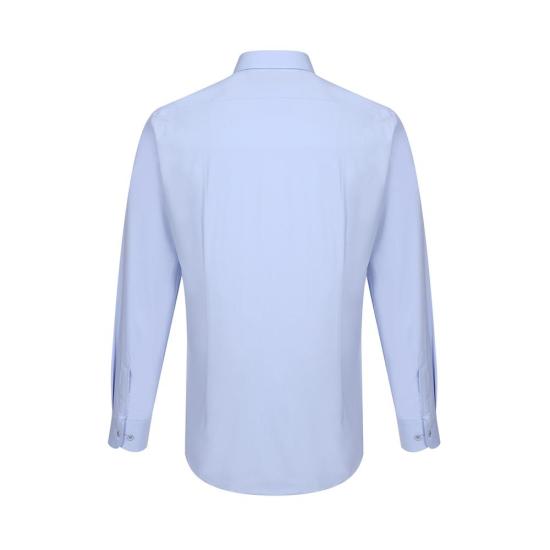 여유로운 기장감의 곡선 마감한 밑단 작업으로 바지에 넣어입을 시 깔끔한 룩을 보여주는 드레스셔츠.