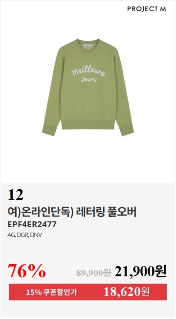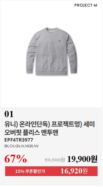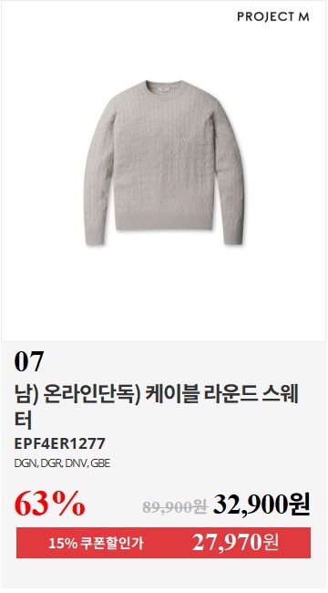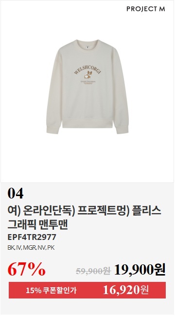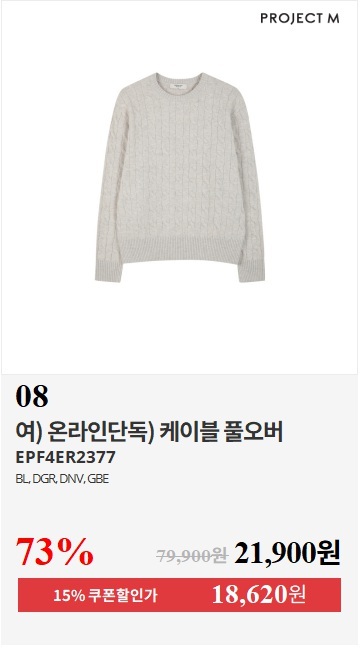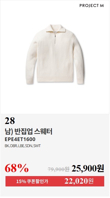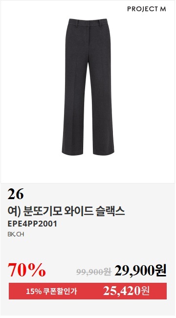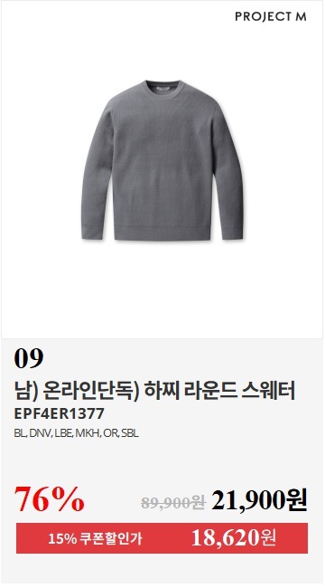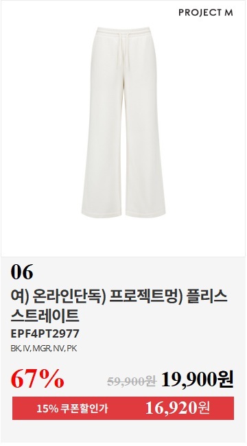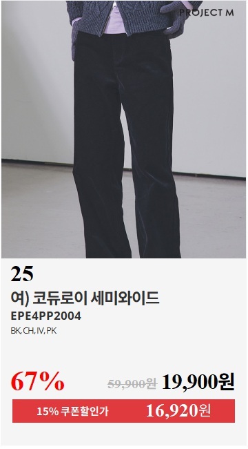 (패션픽)(~84%OFF+15%쿠폰)프로젝트엠 본사직영 FW신상/온라인단독상품/아울렛 특가모음