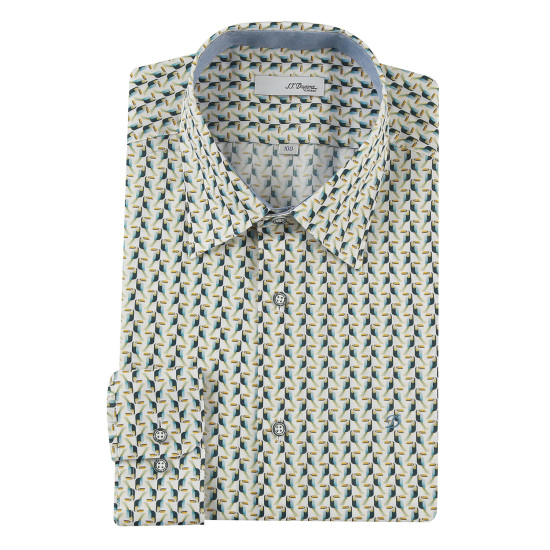 여름용 남방 스타일로 넥밴드 안쪽과 커프스 안쪽 배색으로 포인트를 준