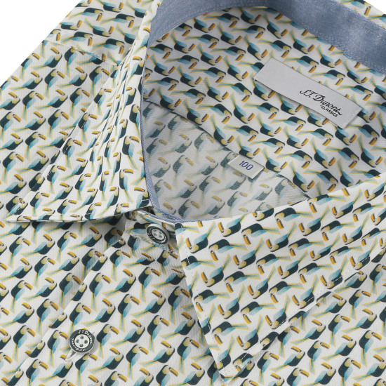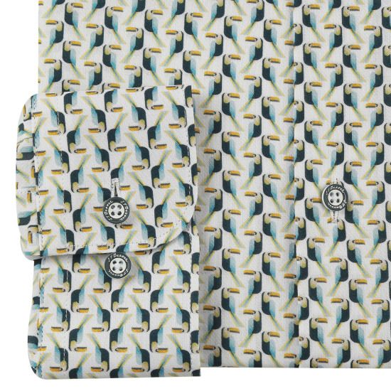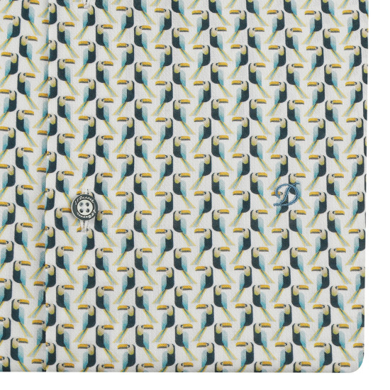 - 여름용 시원한 면 보일원단의 앵무새가 프린팅된 슬림핏 제품입니다