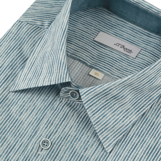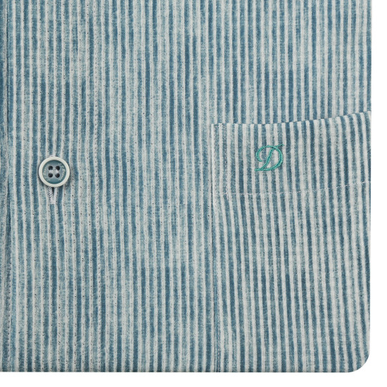 시원한 여름용 소재인 폴리 써커 스트라이프 프린트 제품입니다. 밑단 완만한 사양과 밴드안 커프스안 솔리드 배색사양의