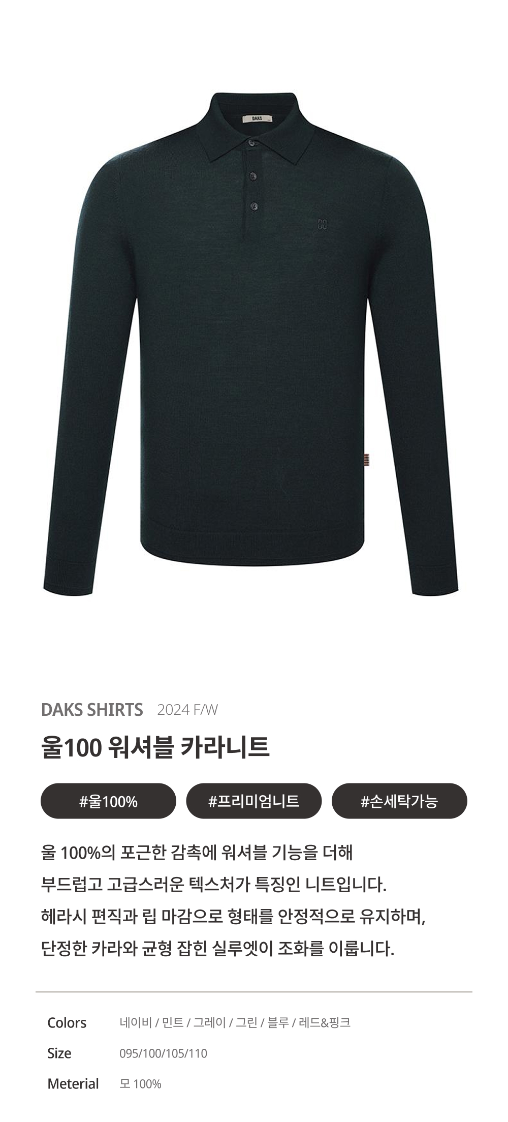 닥스울 100 워셔블 카라니트 그린_DKW1SWTL150E1