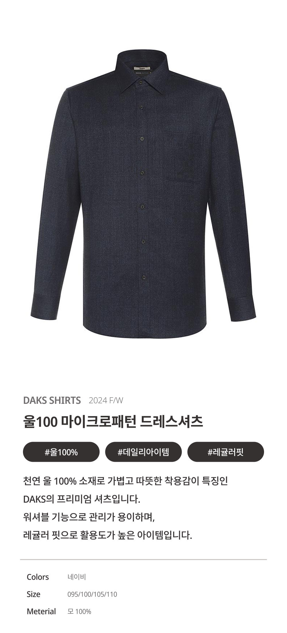 닥스울100 마이크로 솔리드패턴 셔츠_DKW1SHDL150N1