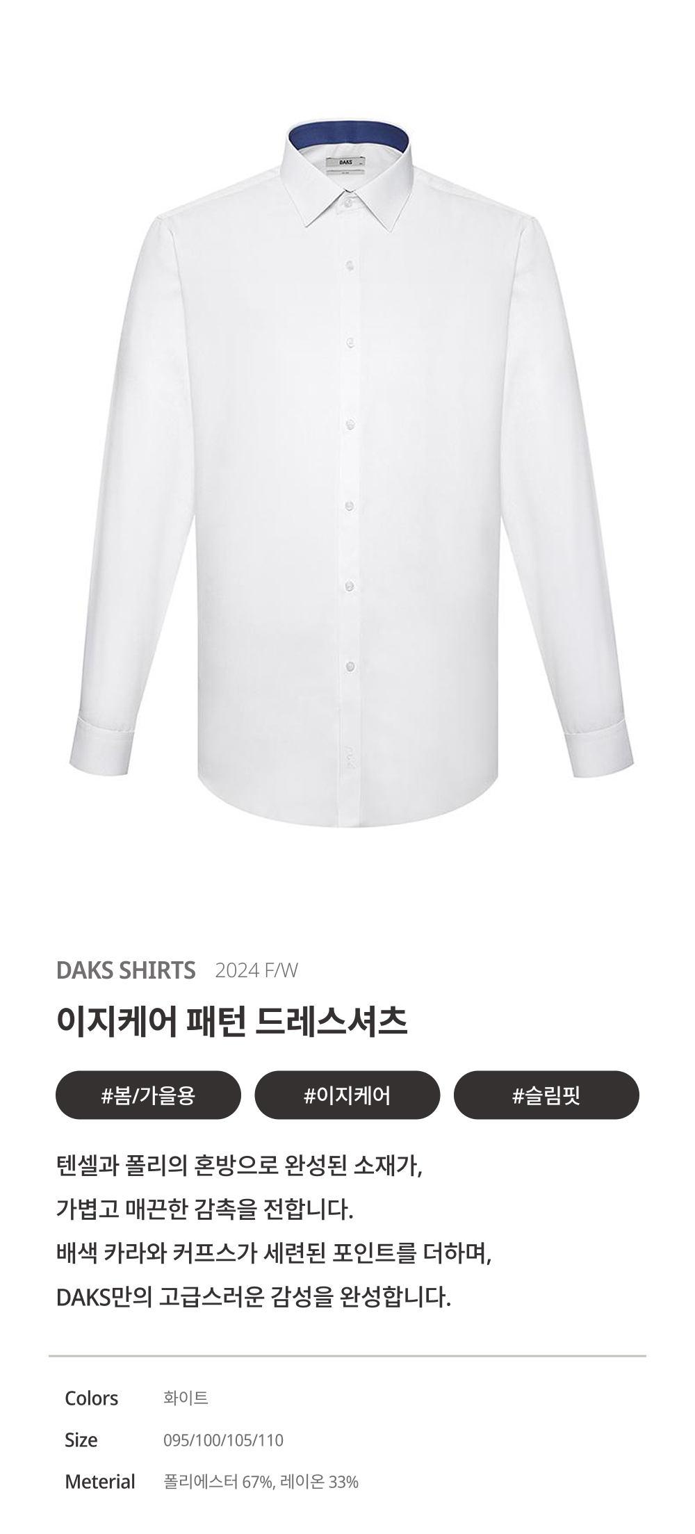 닥스폴리혼방 이지케어 솔리드패턴 슬림핏 드레스셔츠_DKA1SHDL310A1