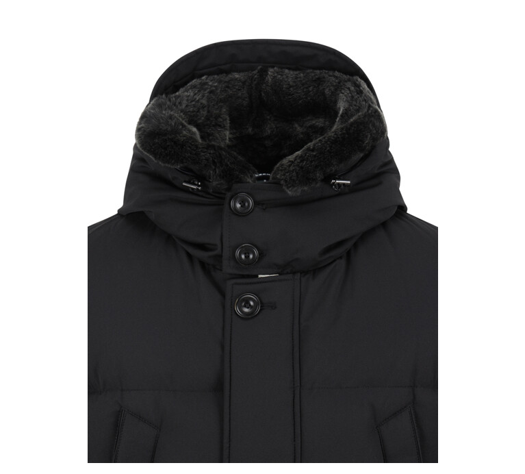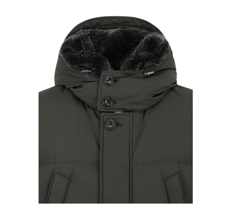 포인트를 주며 세련된 느낌으로 스타일을 보완하고 오리털로 보온성을 높여주도록 만든제품