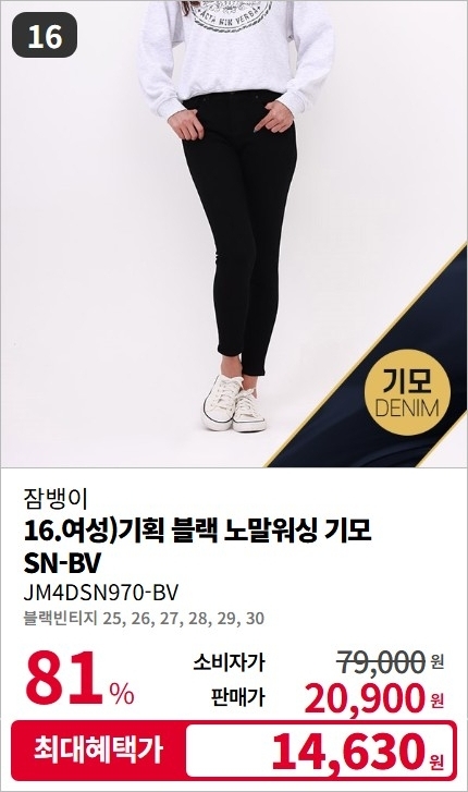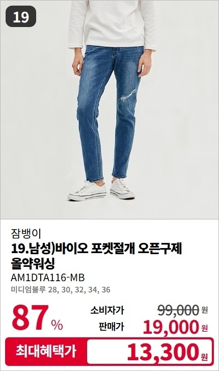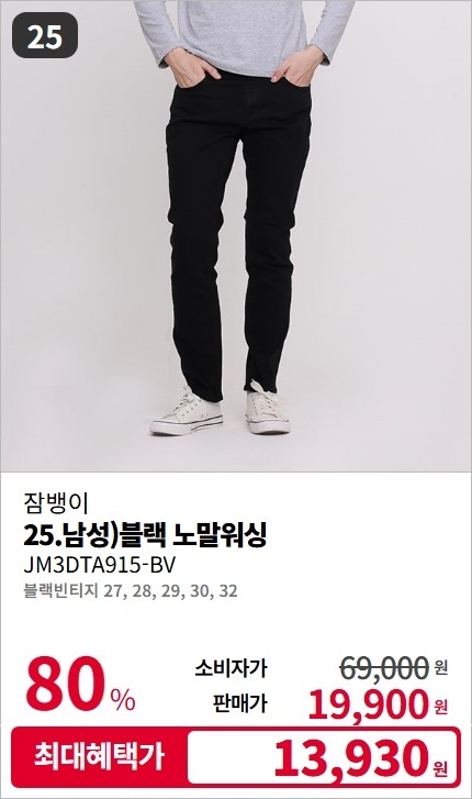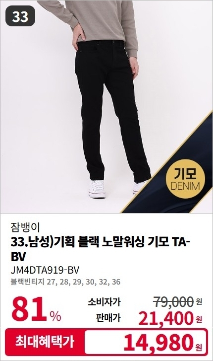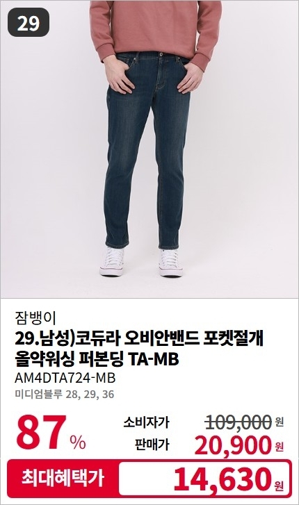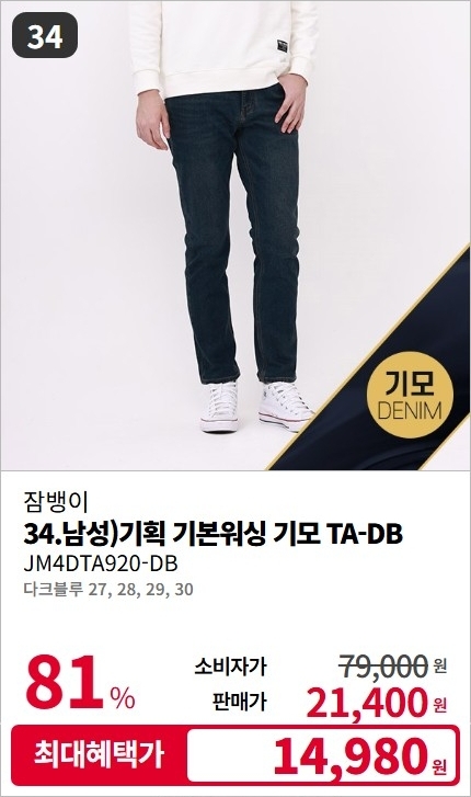 잠뱅이 남/여 F/W 기모 데님 팬츠 청바지 스페셜 세일
