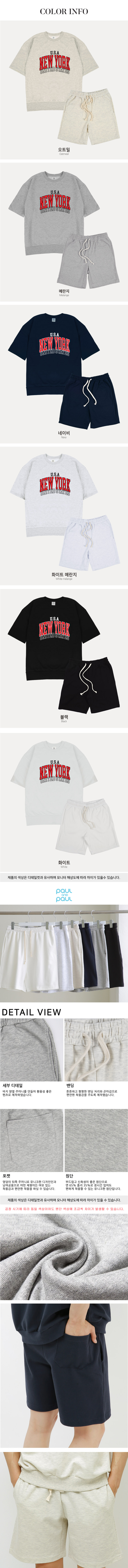 NEW YORK 오버핏 반팔 맨투맨 반바지 셋업 6컬러