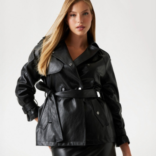 - 상품설명 여성 인조가죽 중힙기장 트렌치 자켓