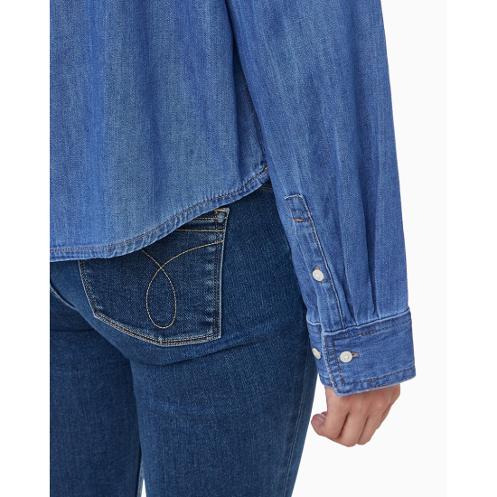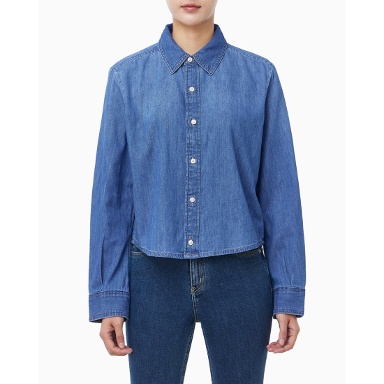 (롯데백화점)(47E902G)여성 크롭 인디고 L/S 셔츠