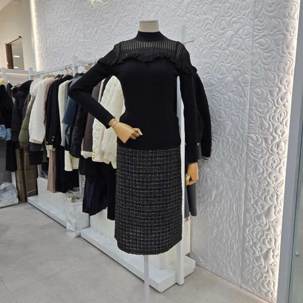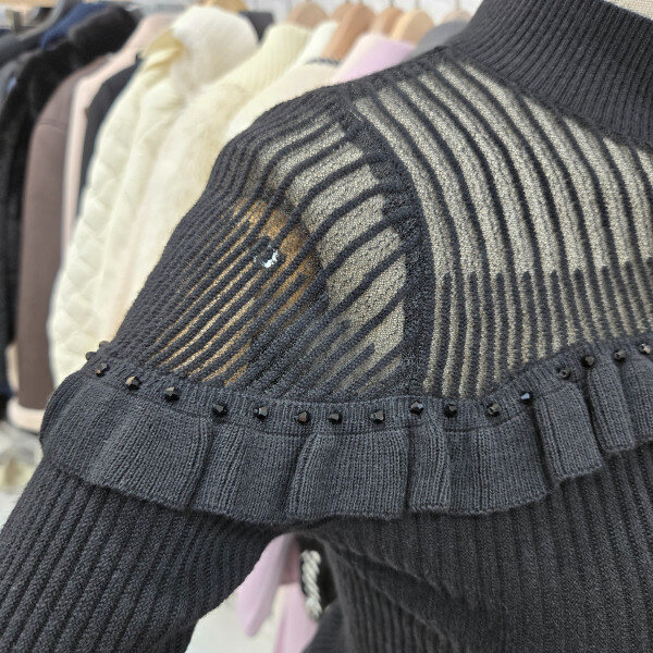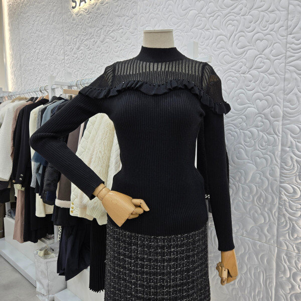프릴 시스루 니트 티셔츠 S241C911)_DG
