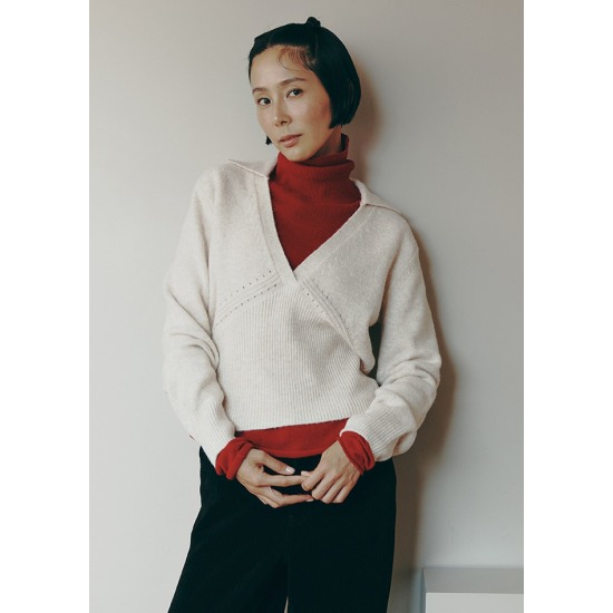 (롯데백화점)여성 브이넥 카라 레이어드 니트 (PWTH4NTL55W)