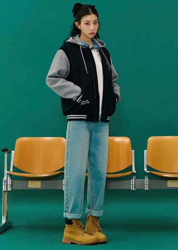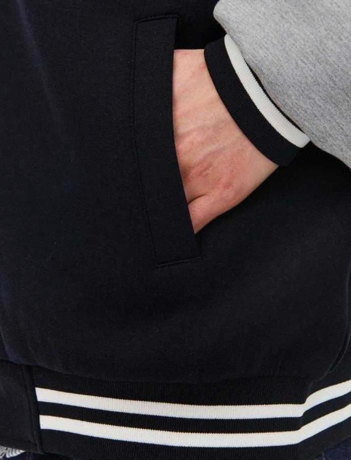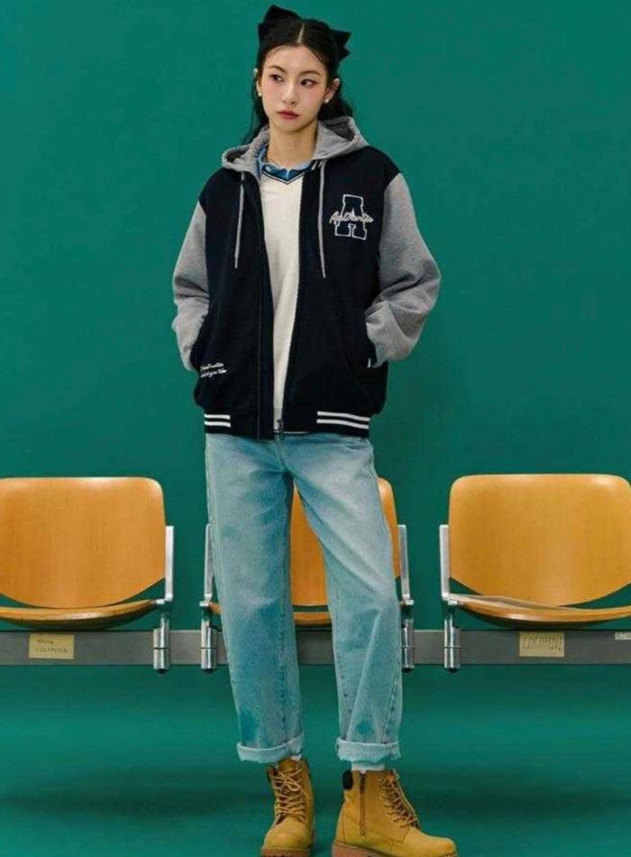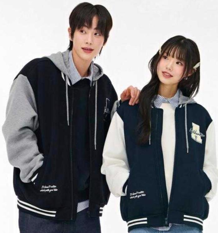 부드러운 쪽감의 져지 소재 사용한 후드 탈부착 바시티 점퍼